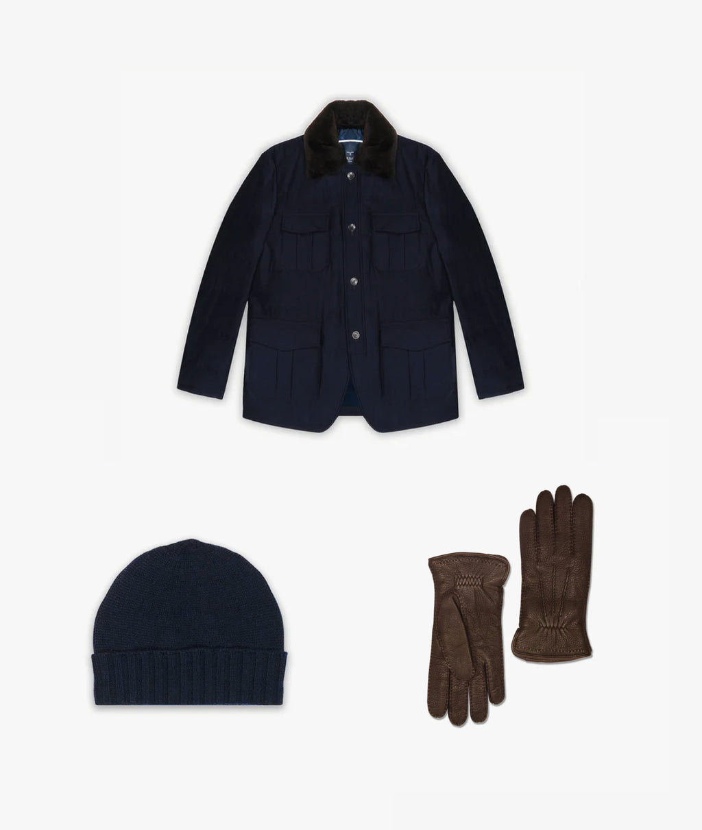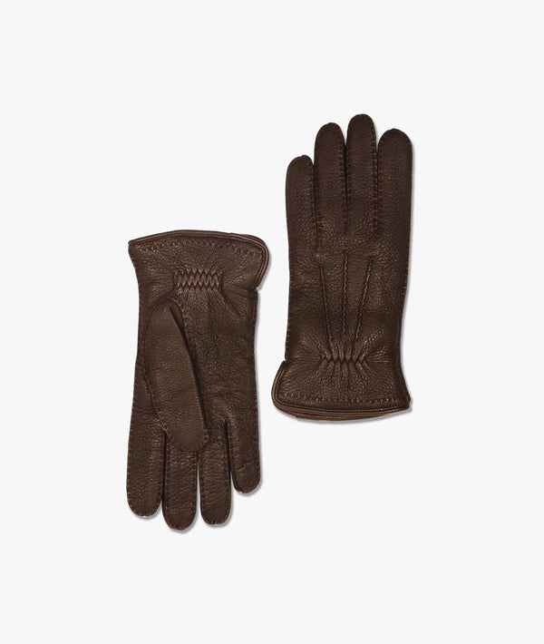 100% deerskin leather*, cashmere lining, dry clean only