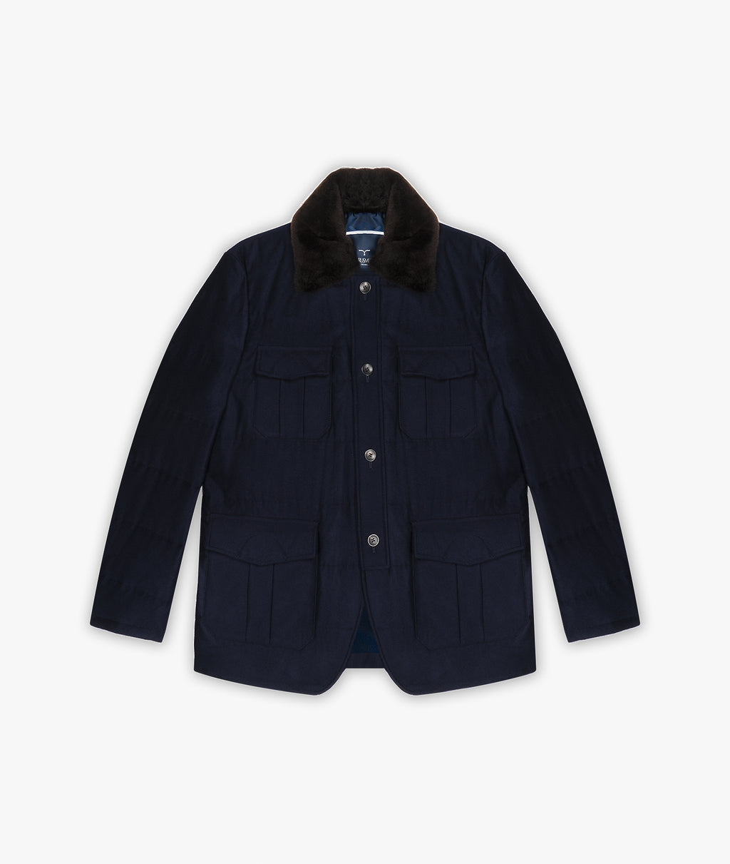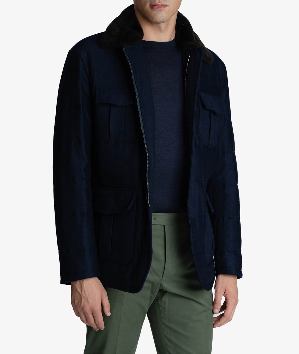 100% Cashmere, beaver fur collar, dry clean only