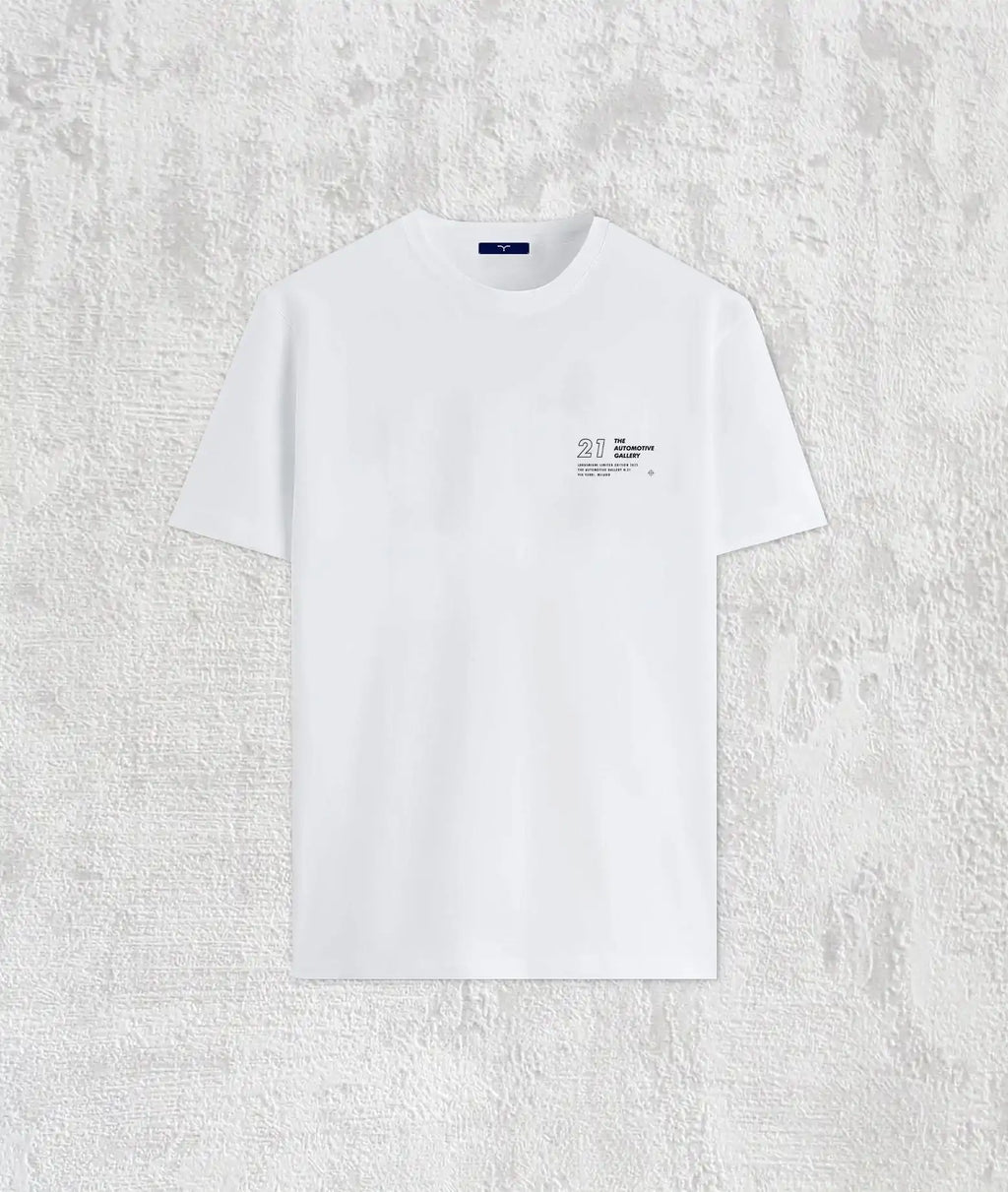 The white 100% cotton t-shirt, proudly made in Italy, features a print designed by the LARUSMIANI creative division and is presented inside an exclusive Larus blue collector's box set.