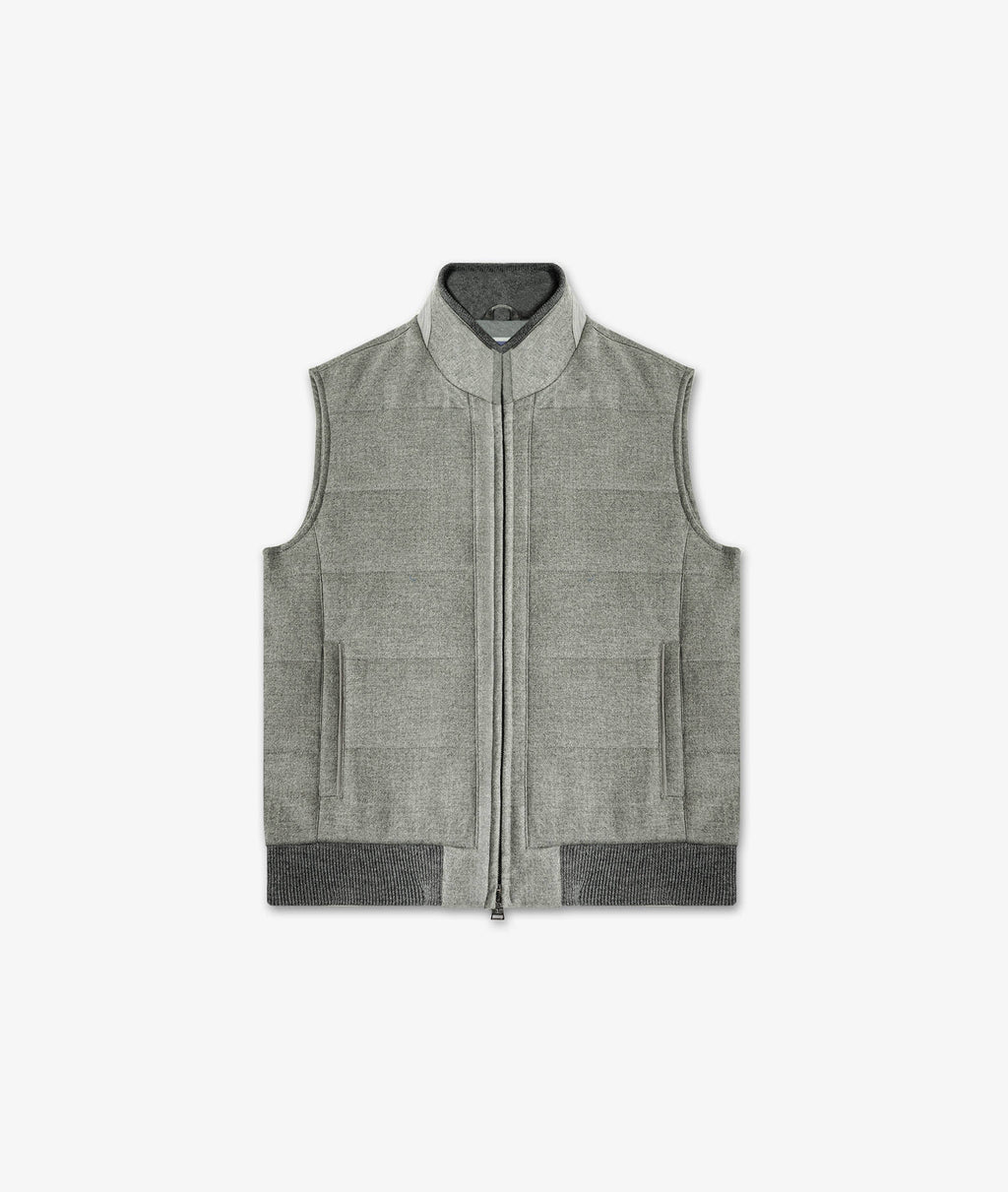 This quilted gilet embodies the perfect balance of sartorial elegance and modern functionality. Crafted from an exquisite blend of cashmere and wool, the piece offers extraordinary softness to the touch and ideal thermal comfort for transitional seasons.